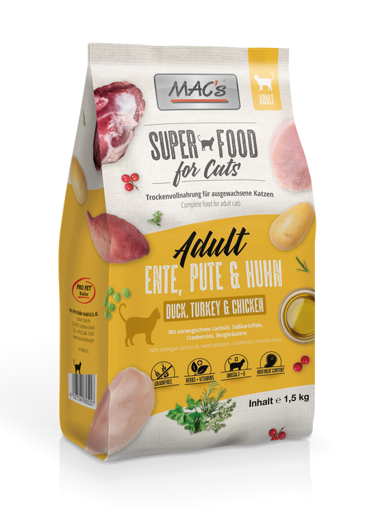 MAC's CAT Trockenfutter Adult - Ente, Pute & Huhn