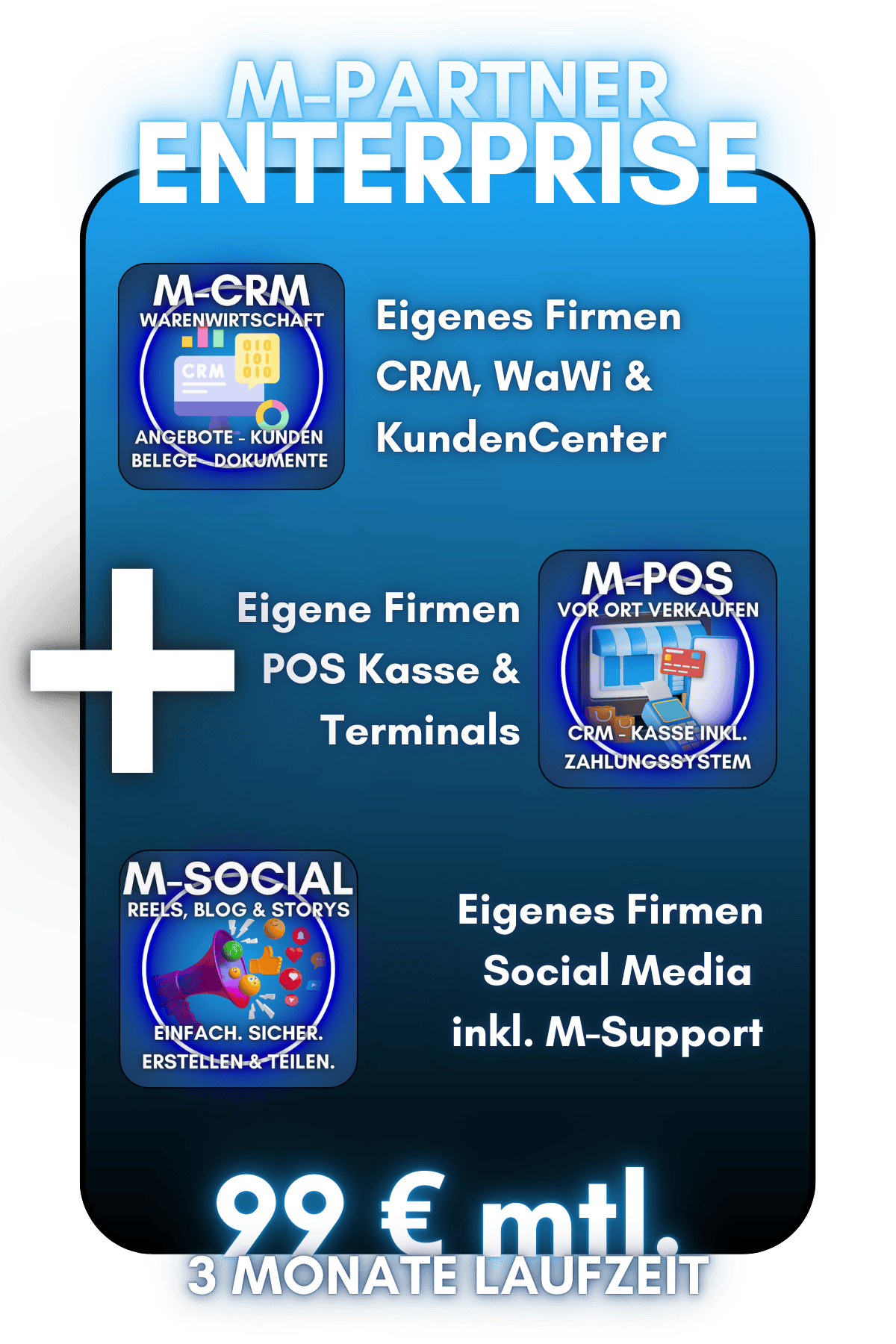 Als M-Partner, mit Ladenlokal vor Ort, erhälst Du folgende M-Community Enterprise Leistungen:
