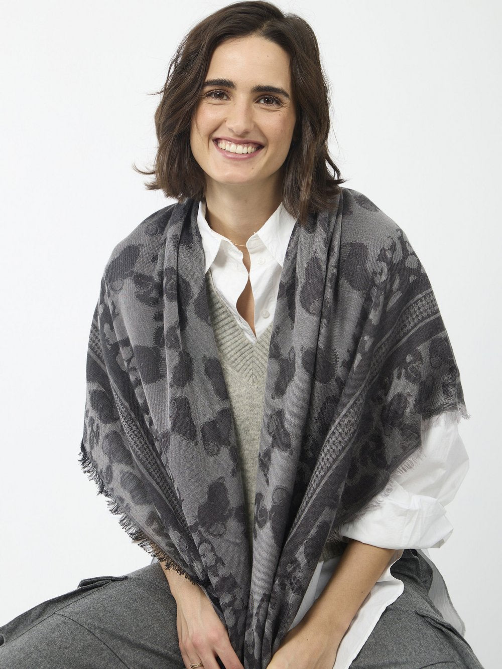 Styling kann so einfach sein. Eine gut sitzende Jeans, ein schlichtes Shirt und als Hingucker dieses stylische Erdbeer-Tuch. Das hochwertige Jacquard-Tuch wurde aus reiner Baumwolle in einer indischen Manufaktur in Fil Coupé-Technik hergestellt, in der die Jacquard-Weberei eine lange Tradition hat. Bei dem doppelt gewebten Tuch wurde das Erdbeermuster in kontrastierenden Farben gewebt und anschließend ausgeschnitten.