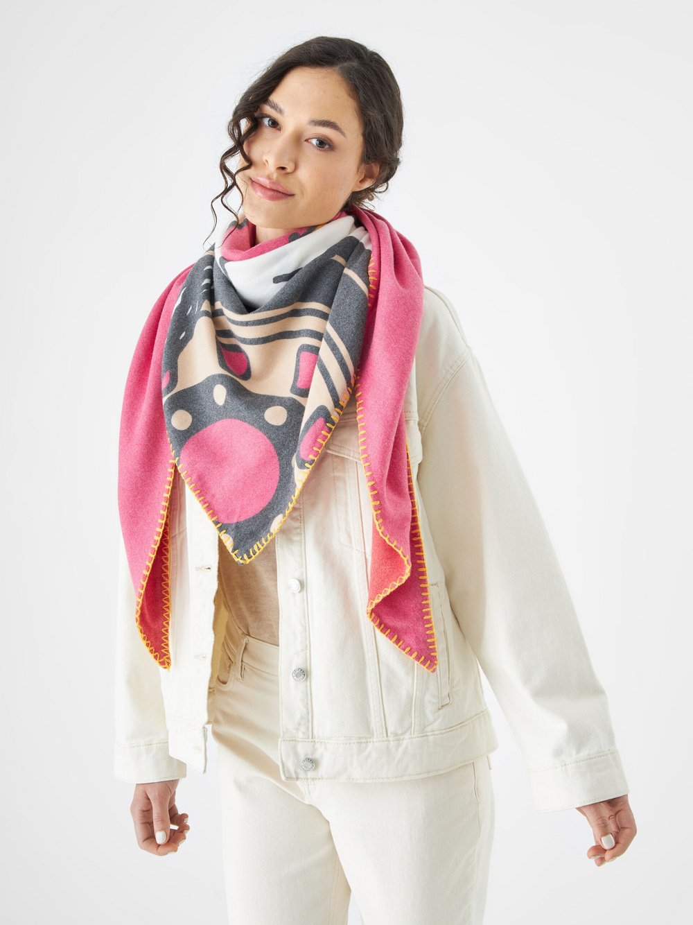 Dieses leichte Tuch setzt auf ein ausdrucksstarkes Allover-Muster aus Herzen. Die fließende Qualität sorgt für ein angenehmes Tragegefühl und macht das Accessoire zu einem charmanten Akzent für vielseitige Stylings – von lässig bis feminin.