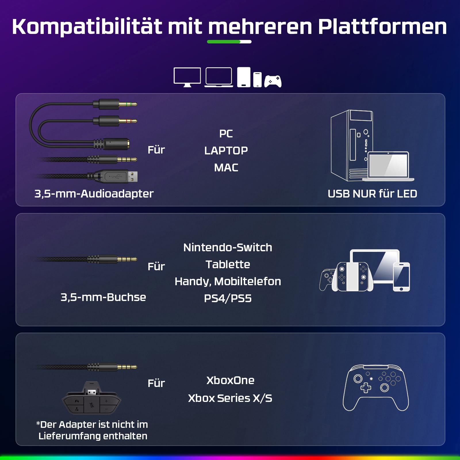 - Cross-platform compatibility: the Fachixy headset with microphone is compatible with most other devices with 3.5 mm audio jack. Note 1: This gaming headset is not suitable for the Xbox 360. Note 2:This gamer headset is not suitable for PS3 if you don't have a 3.5mm jack adapter. Note 3: The USB cable is only to power the LED light, the 3.5mm cable is for sound. Our gaming headset is not a USB headset.