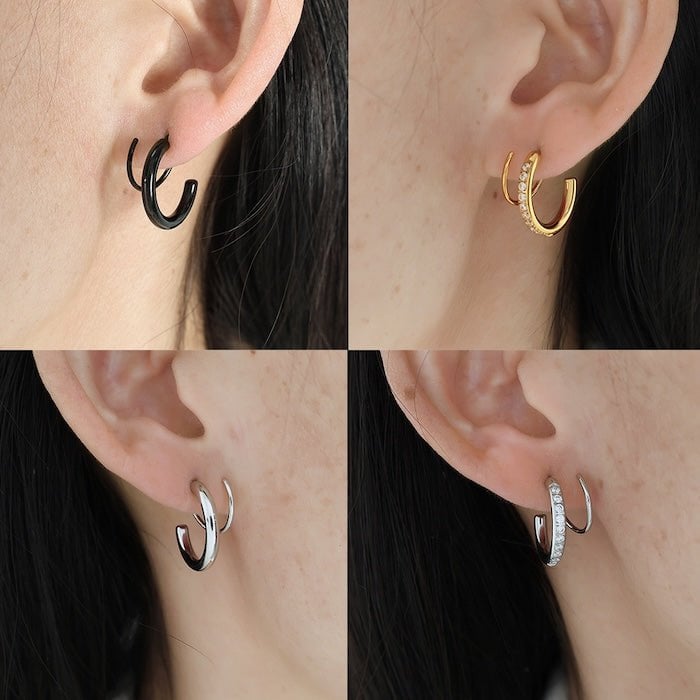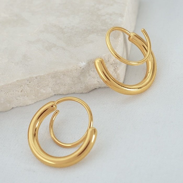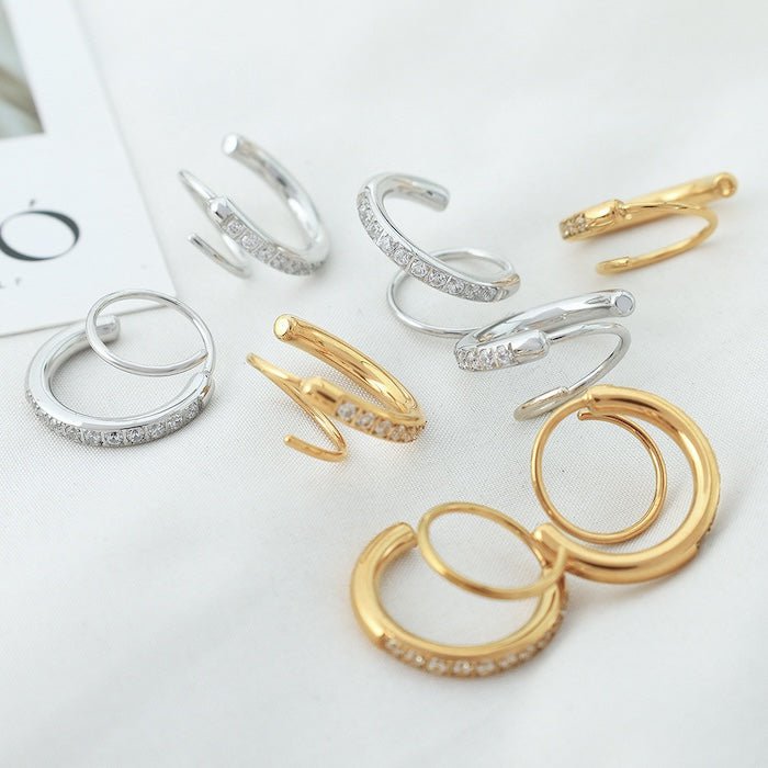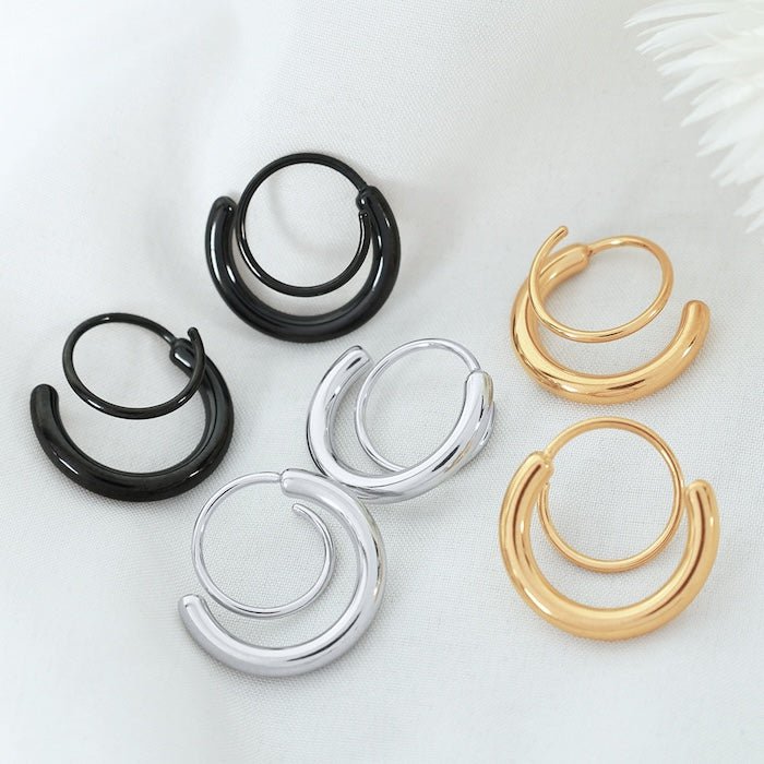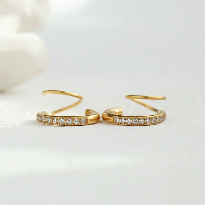Diese geometrischen Spirallinien-Ohrringe zeichnen sich durch ein einzigartiges Spiraldesign aus, das den Eindruck erweckt, als trage man zwei kleine Creolen. Diese Ohrringe sind in Gold, Silber und Schwarz erhältlich und bieten einen schicken, modernen Look. Sie bestehen aus Edelstahl und sind vergoldet oder versilbert und mit oder ohne funkelnden Steinen erhältlich. Ihr minimalistisches Design macht sie perfekt für den täglichen Gebrauch und ein aufmerksames Geschenk für sie.