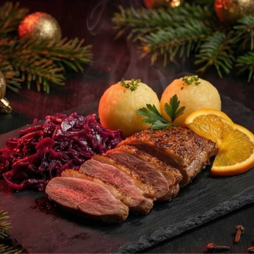 - Wahlweise mit Kartoffelklöße & Salzkartoffeln.