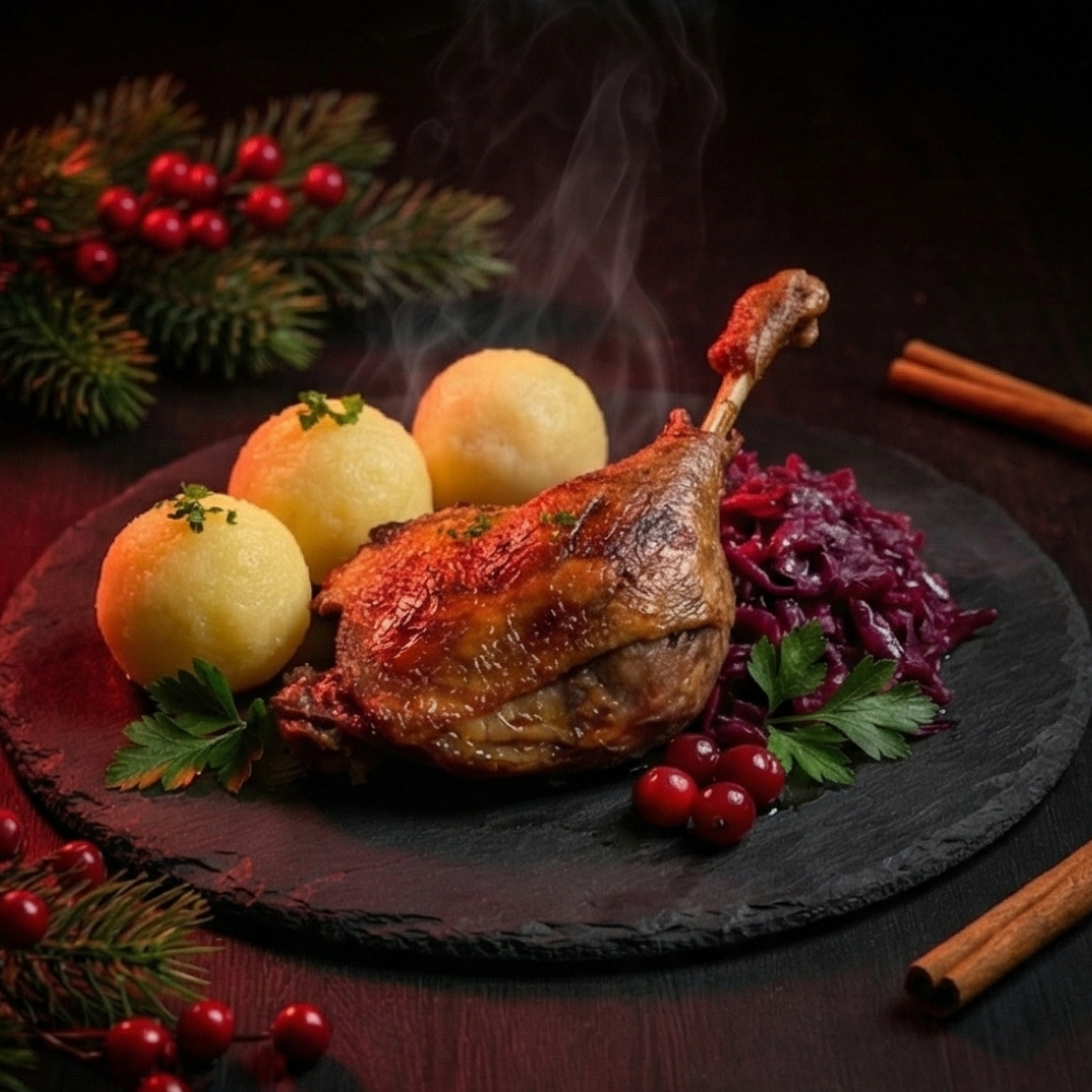 - Wahlweise mit Kartoffelklöße & Salzkartoffeln.