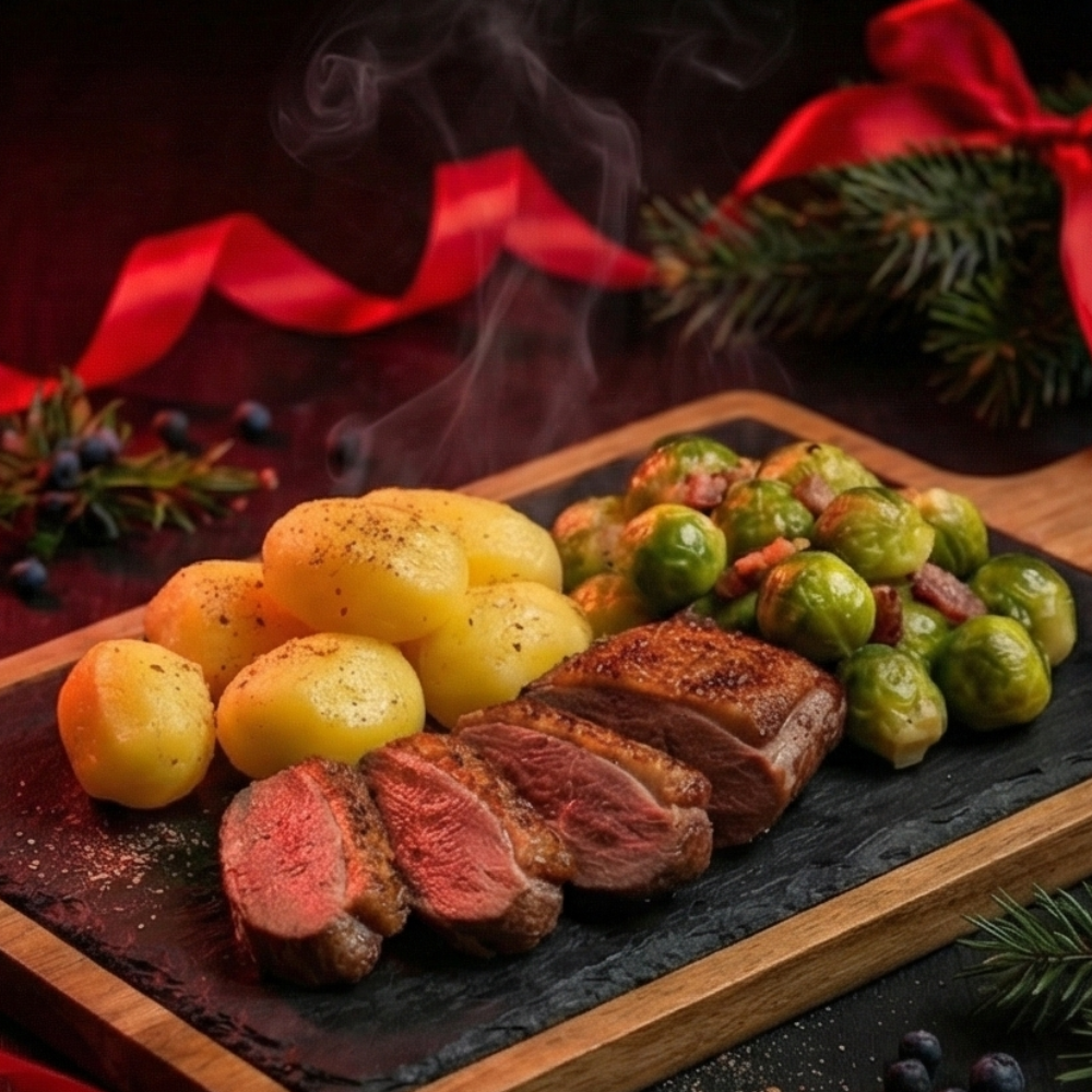 - Wahlweise mit Kartoffelklöße & Salzkartoffeln.