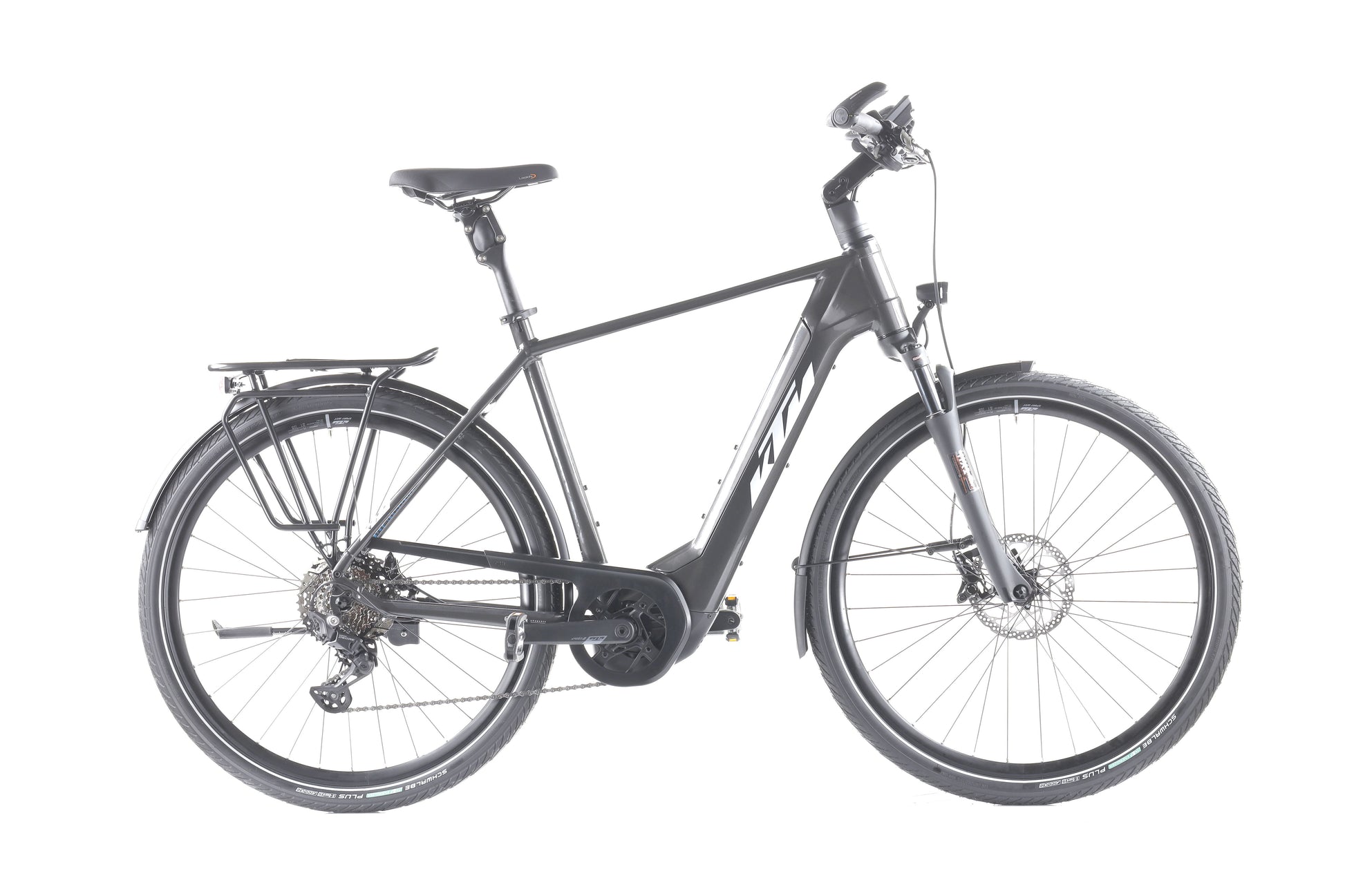 Vorführrad* Zustand : neuwertig* Modelljahr : 2022* Laufleistung in km : 10* Rahmengröße : 56 cm* Rahmen : Diamant, Aluminium* Motor : Bosch Performance Line CX (85 Nm)* Akkukapazität : 750 Wh* Display : Bosch Kiox 300* Federgabel : SR Suntour NX1 Coil LO* Federweg Federgabel : 63 mm* Bremsen : Shimano BR-MT420* Schaltwerk : Shimano Deore 10 fach* Schaltung : Kettenschaltung* Farbe : Grau* Laufradgröße : 28"* Gewicht in kg ca. : 28,6* Pedale : ja* Ladegerät : ja