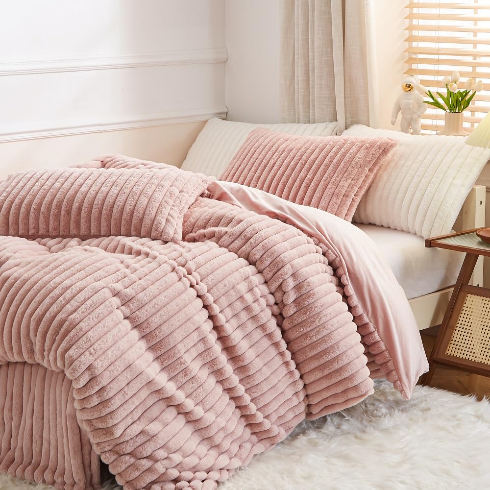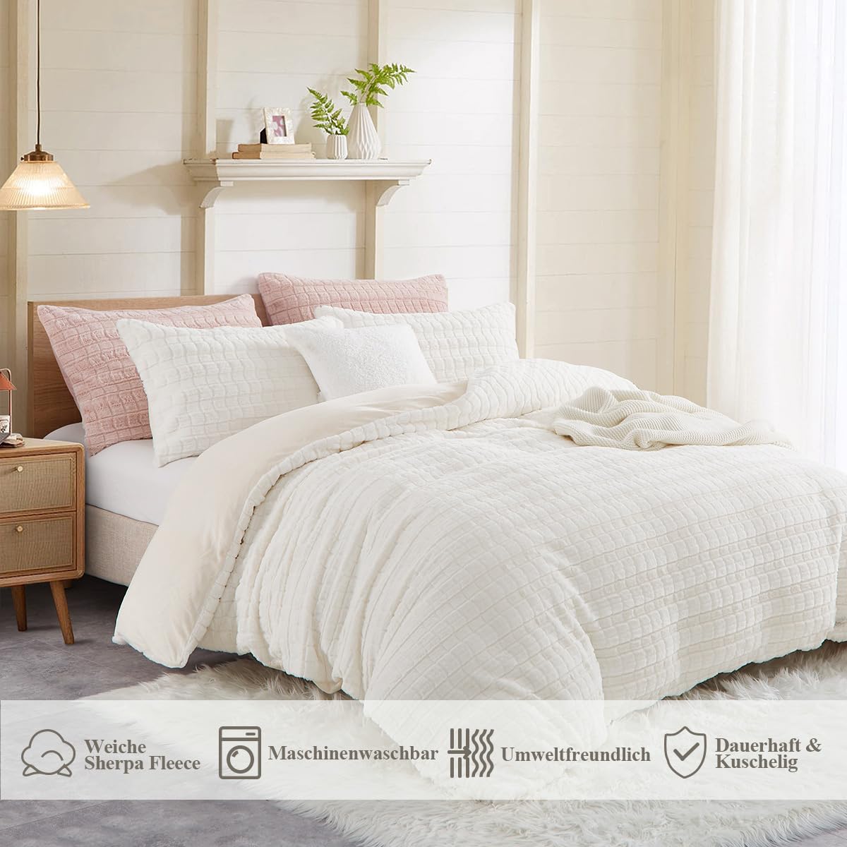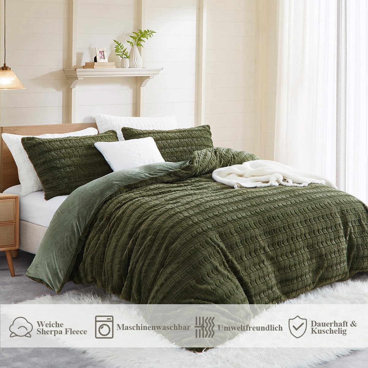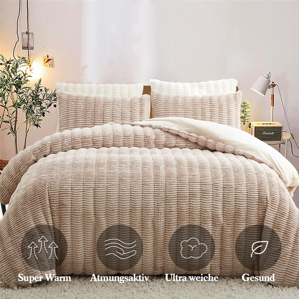 - Premium Material:Die Vorderseite des Bettbezug und Kissenbezug aus Kunstkaninchenfell besteht aus 100% Mikrofaser Plüsch Stoff,und die Rückseite Besteht aus Ultraweichem Flanell Stoff.Beständigkeit gegen Verblassen,Faltenbildung,Pilling-Resistent.Verleihen Sie einen Hauch von Anmut Bringen Sie Farbe in Ihr Zimmer.Bietet außerdem beste Wärme und angenehme Atmungsaktivität.