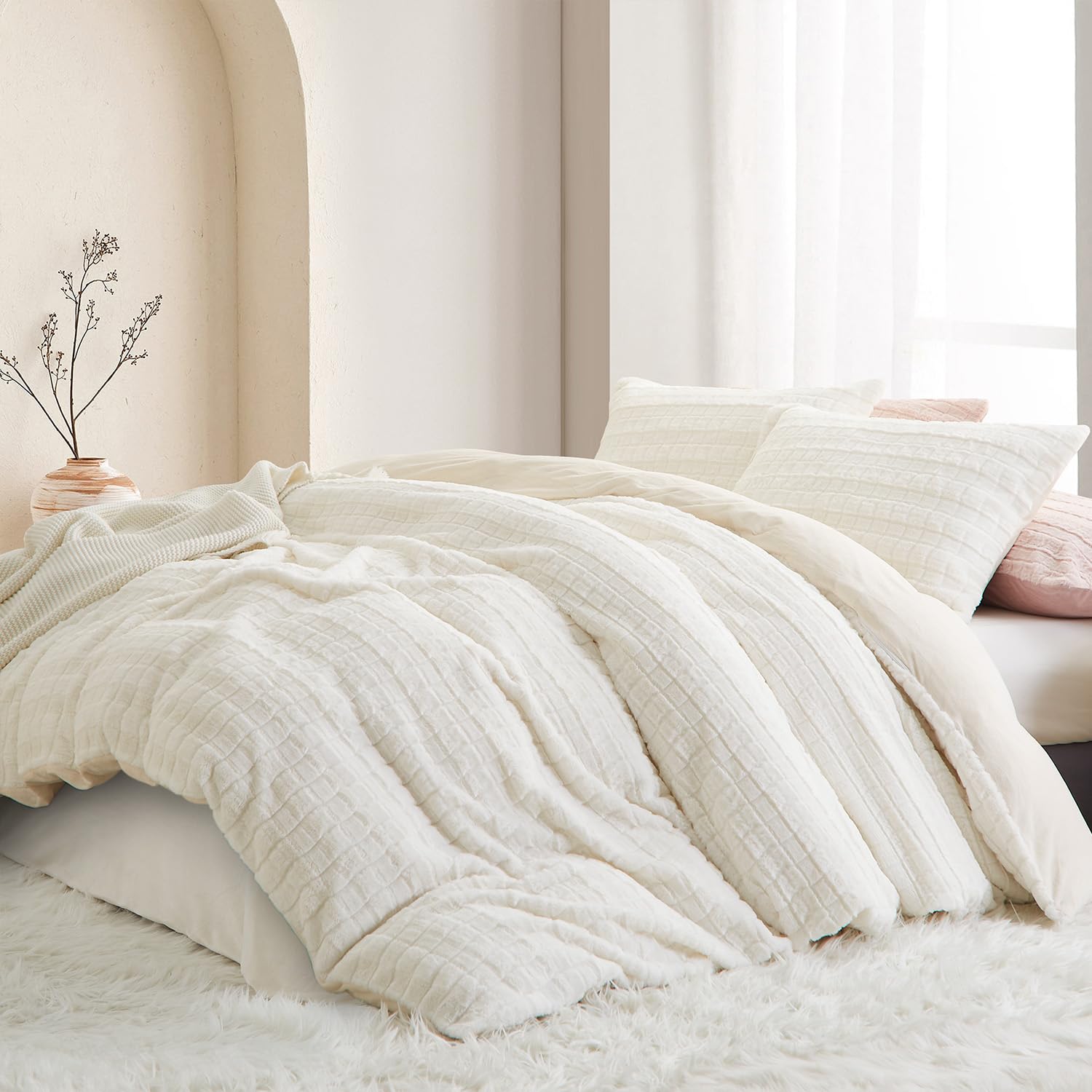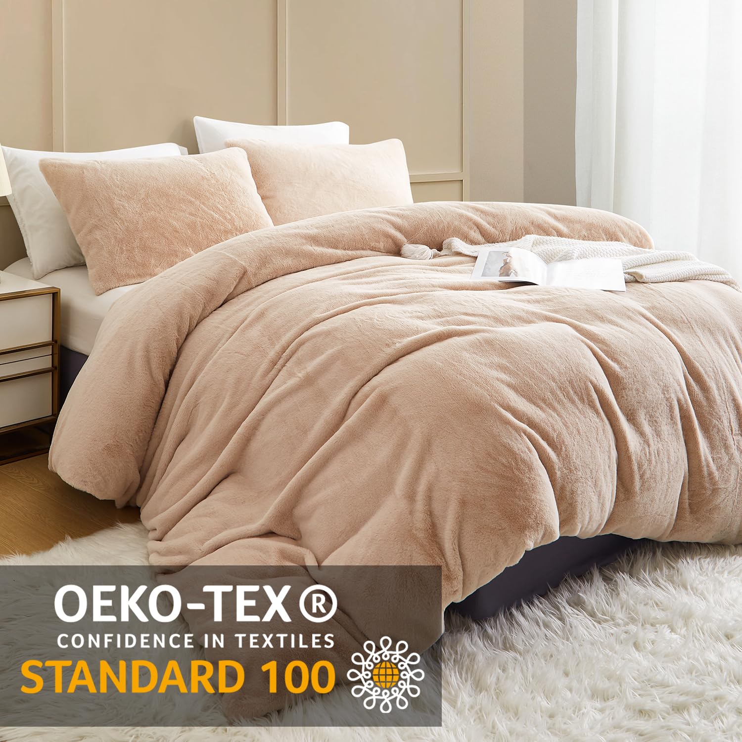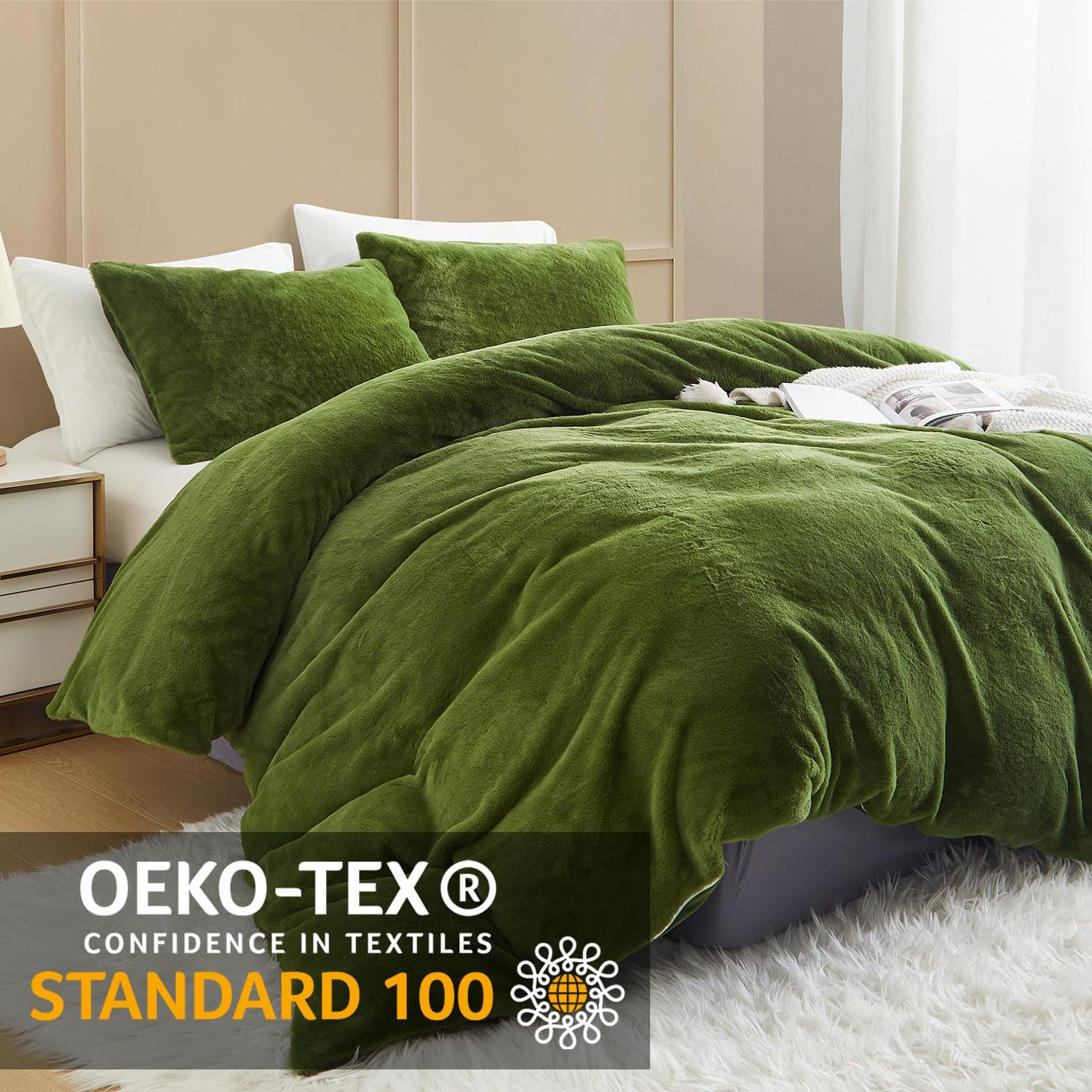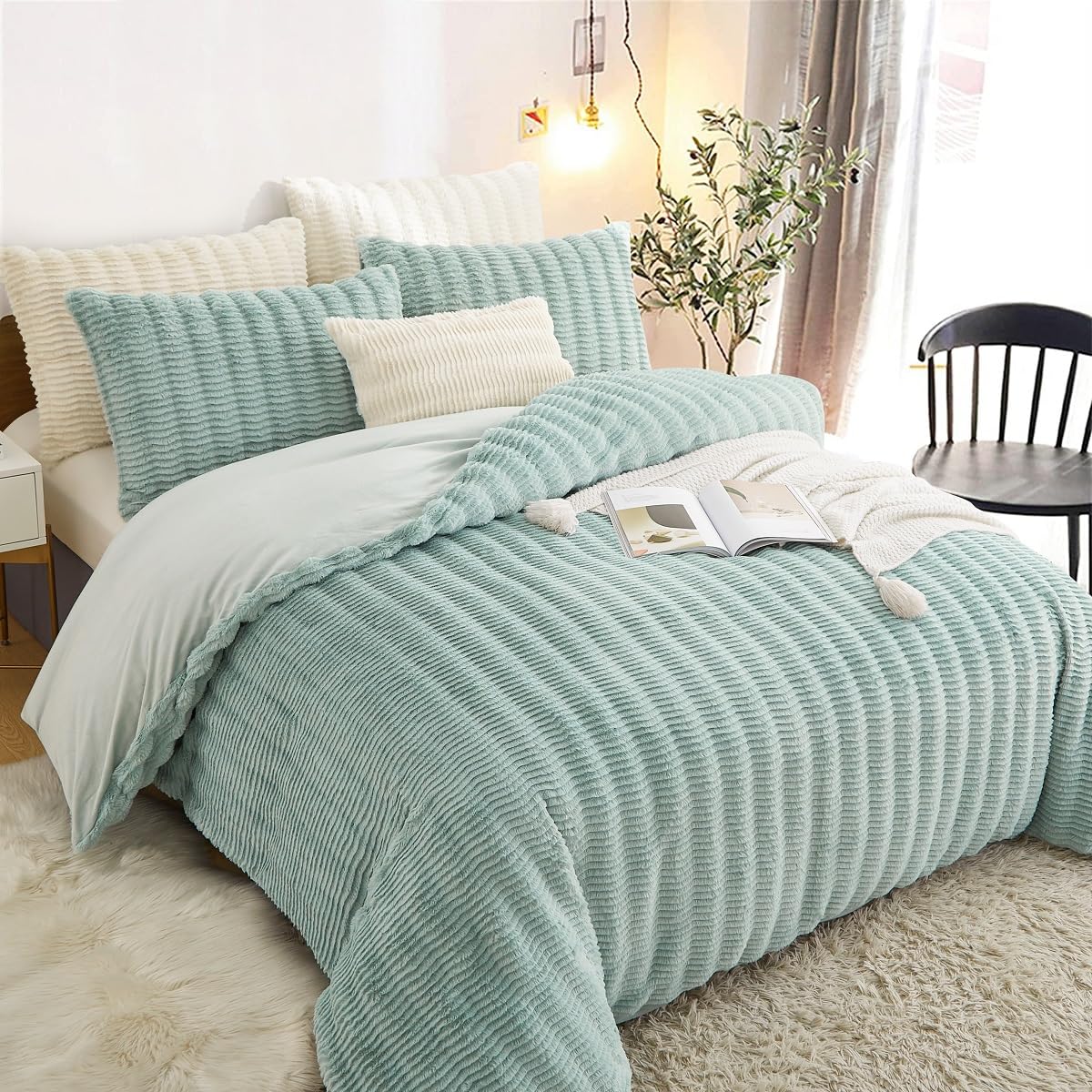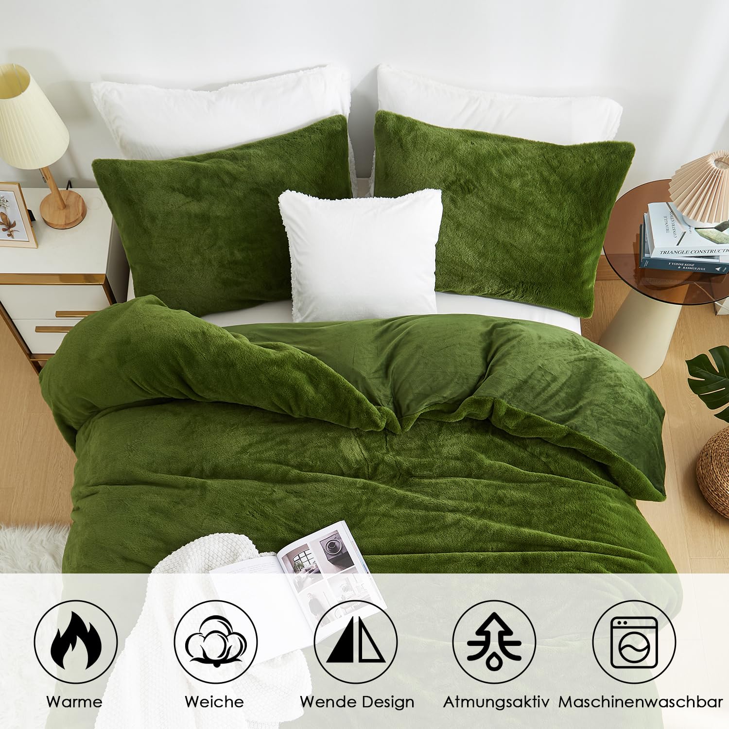 - Premium Material:Die Vorderseite des Bettbezug und Kissenbezug aus Kunstkaninchenfell besteht aus 100% Mikrofaser Plüsch Stoff,und die Rückseite Besteht aus Ultraweichem Flanell Stoff.Beständigkeit gegen Verblassen,Faltenbildung,Pilling-Resistent.Verleihen Sie einen Hauch von Anmut Bringen Sie Farbe in Ihr Zimmer.Bietet außerdem beste Wärme und angenehme Atmungsaktivität.