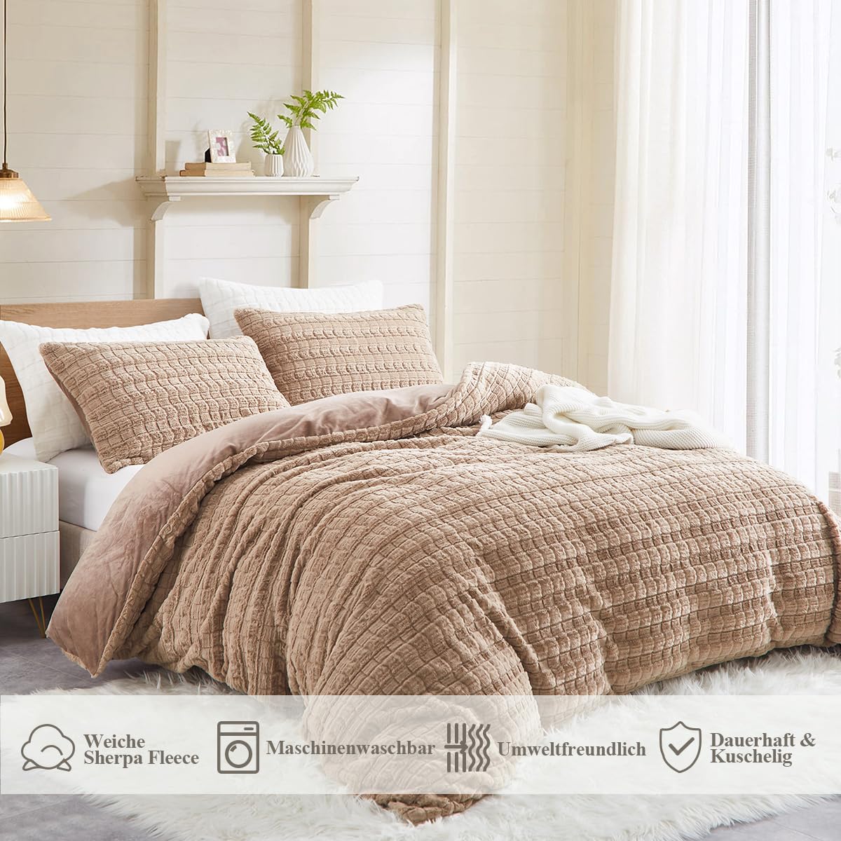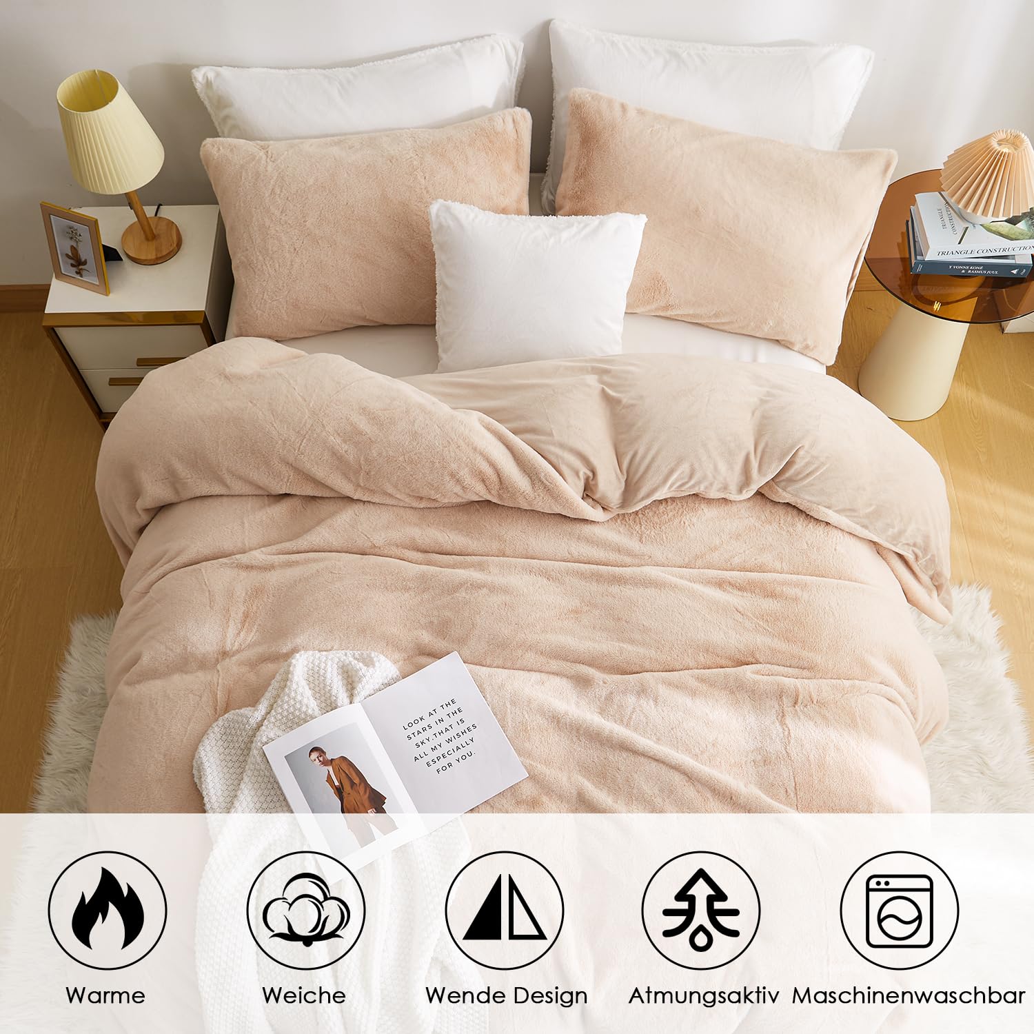 - Vielseitig Einsetzbar:Im Winter legen Sie einfach die Steppdecke oder den Bettbezug in den flauschigen Bettwäsche,und schon können Sie die Wärme genießen,ohne Angst vor der Kälte zu haben.Im Sommer kann dieser Kunstfell Bettwäsche allein als Bettdecke oder Kuscheldecke verwendet werden Sie mit genügend Komfort.