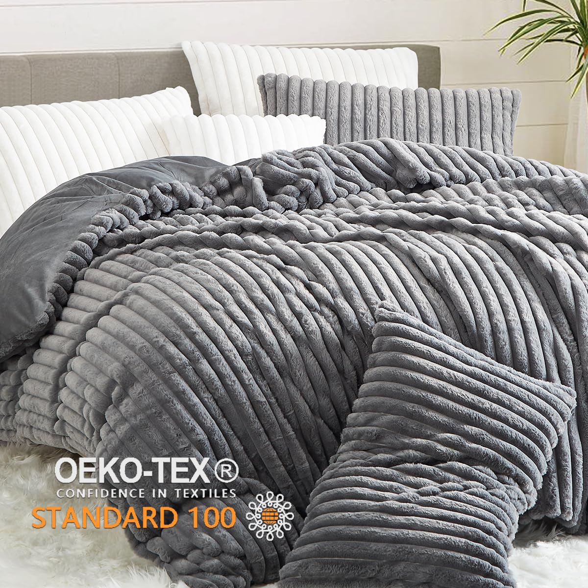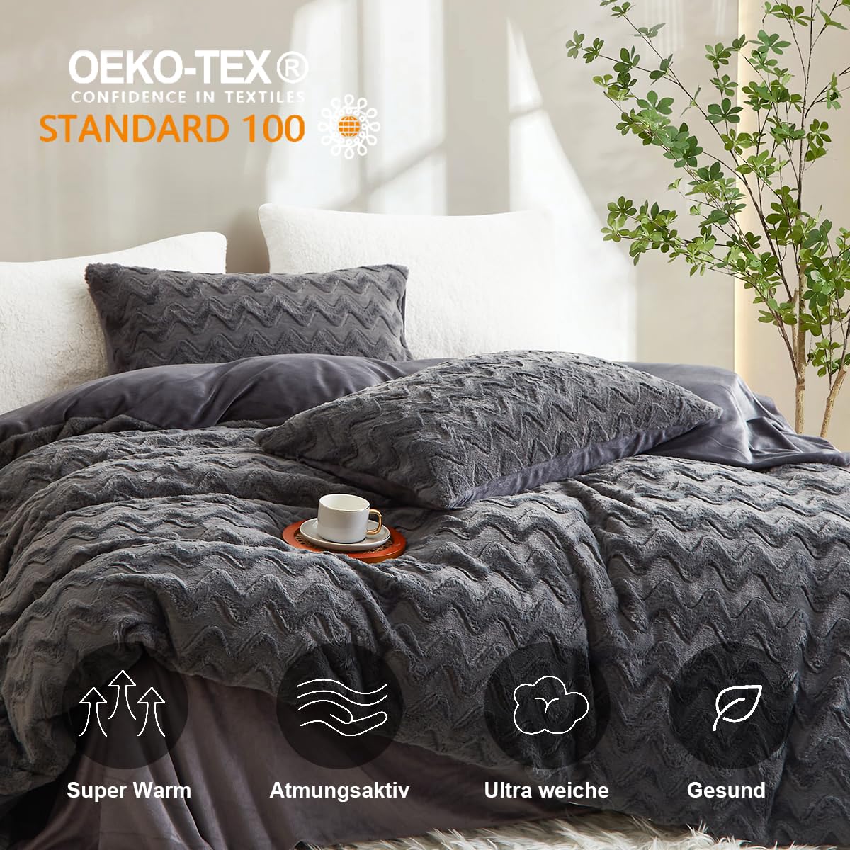 - Dunkelgrau Bettwäsche Set:1 Bettbezug 155x220 cm + 1 Kissenbezug 80x80 cm,Unsere Warme Winter Plüsch Bettwäsche werden in OEKO-TEX Standard 100-Fabriken hergestellt.Es stellt sicher,dass unsere Produkte nur minimale Auswirkungen auf die Umwelt haben und nicht schädlich für Ihre Haut sind.
