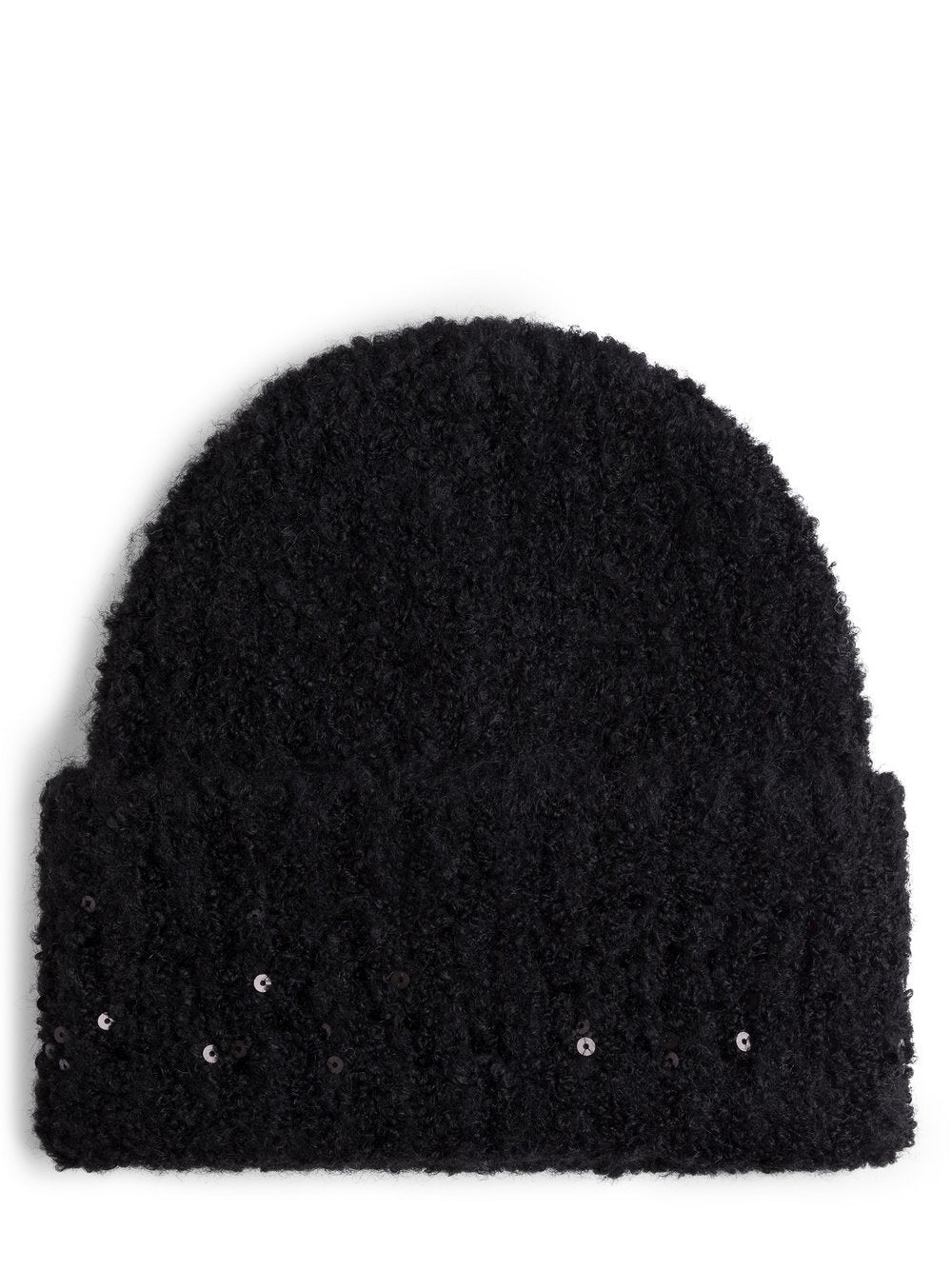 Filigrane Pailletten und Glanzfäden zieren die Marie Lund Mütze und bilden einen schönen Kontrast zur groben Strick-Qualität.