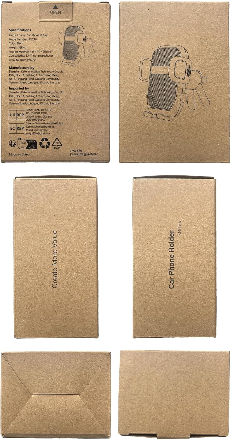 - Mehrere verbesserte Funktionen: Die Kontaktfläche der Handyhalterung ist mit weichem gerilltem Silikon überzogen, was eine bessere Luftzirkulation ermöglicht und die Möglichkeit des Abrutschens des Telefons verringert. Die inneren Teile der Klemmarme sind ebenfalls mit Silikonpads ausgestattet, um Kratzer zu vermeiden. Das PC+ABS-Material mit ausgezeichneter Hitzebeständigkeit macht es für Regionen mit Temperaturen von -20°C bis 70°C geeignet.