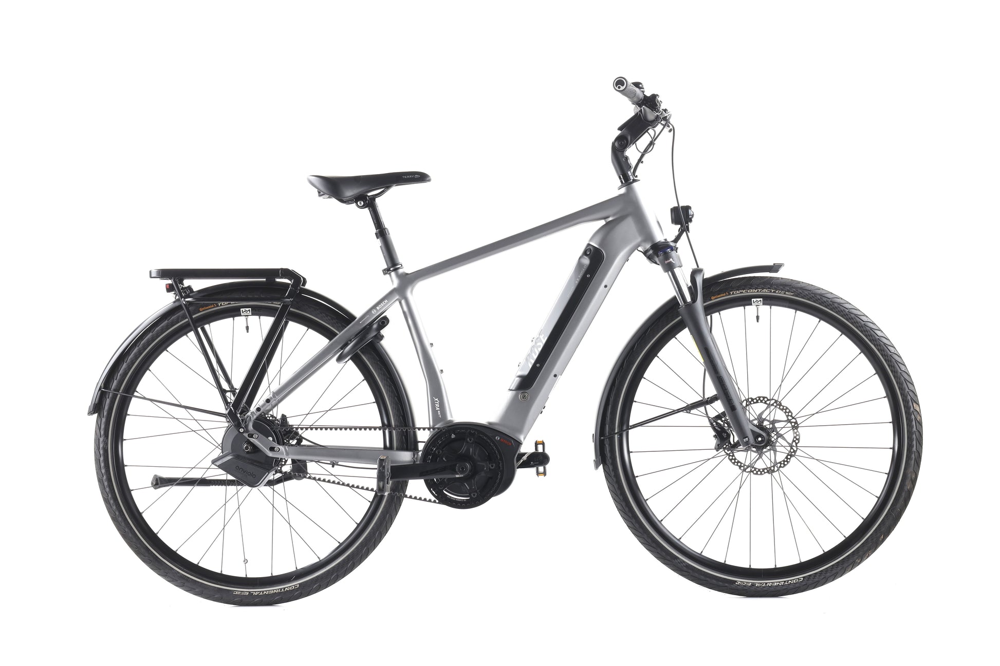 Leasingrückläufer* Zustand : neuwertig* Modelljahr : 2022* Laufleistung in km : 186* Rahmengröße : 48 cm* Rahmen : Diamant, Aluminium* Motor : Bosch Performance Line (65 Nm)* Akkukapazität : 500 Wh* Display : Bosch Kiox* Federgabel : SR Suntour Mobie A32* Federweg Federgabel : 75 mm* Bremsen : Shimano BR-MT400* Schaltwerk : enviolo Automatiq (stufenlos)* Schaltung : Nabenschaltung, Freilauf* Farbe : Silber* Laufradgröße : 28"* Gewicht in kg ca. : 27,5* Pedale : ja* Ladegerät : ja