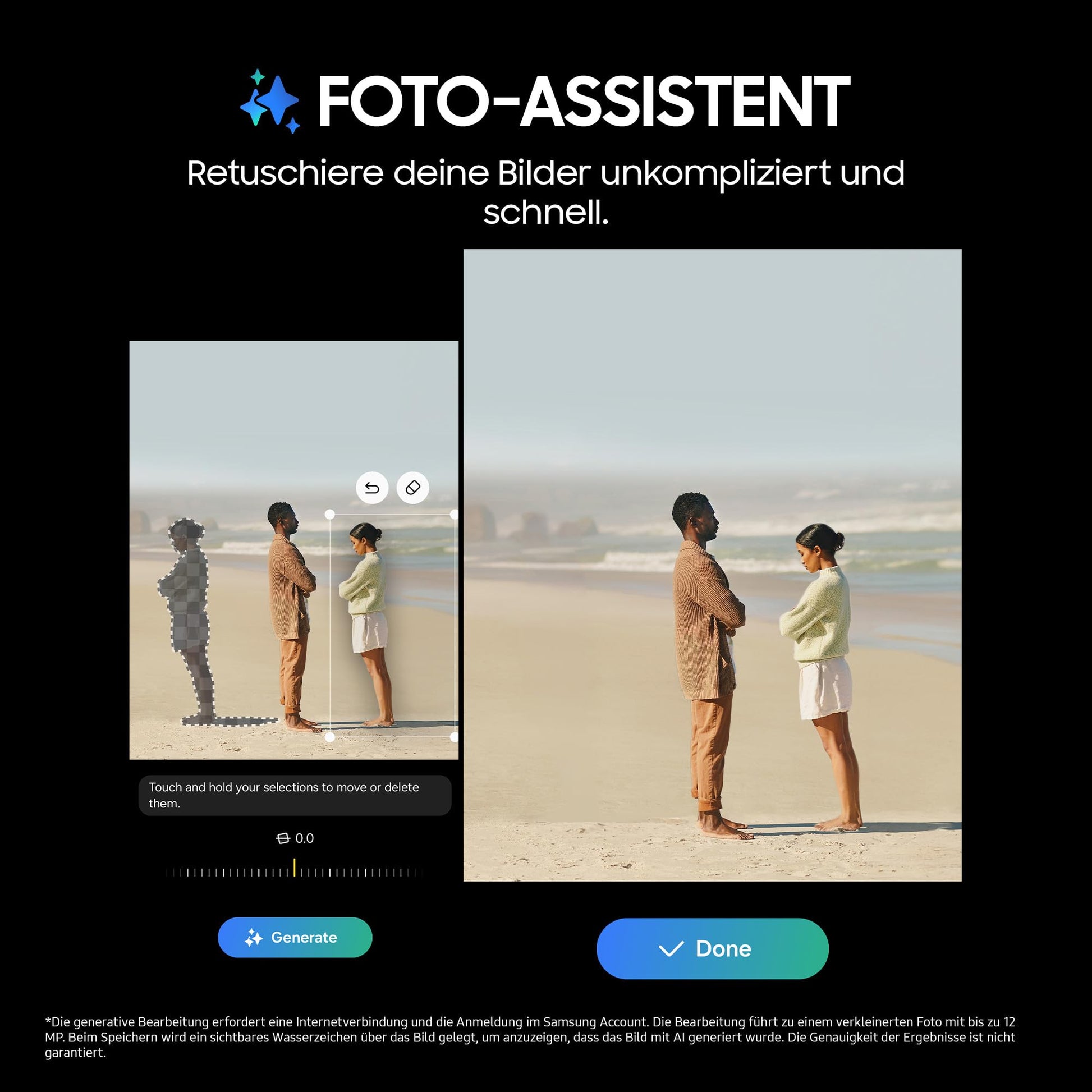- Alles über dein Smartphone, alles mit AI: Bearbeite mühelos Fotos, Dolmetsche Anrufe dank Live-Übersetzung in Echtzeit, Verwandle deine Notizen in eine übersichtliche Zusammenfassung, Suche im Netz wie noch nie zuvor¹⁷ ¹⁸ ¹⁹ ²⁰