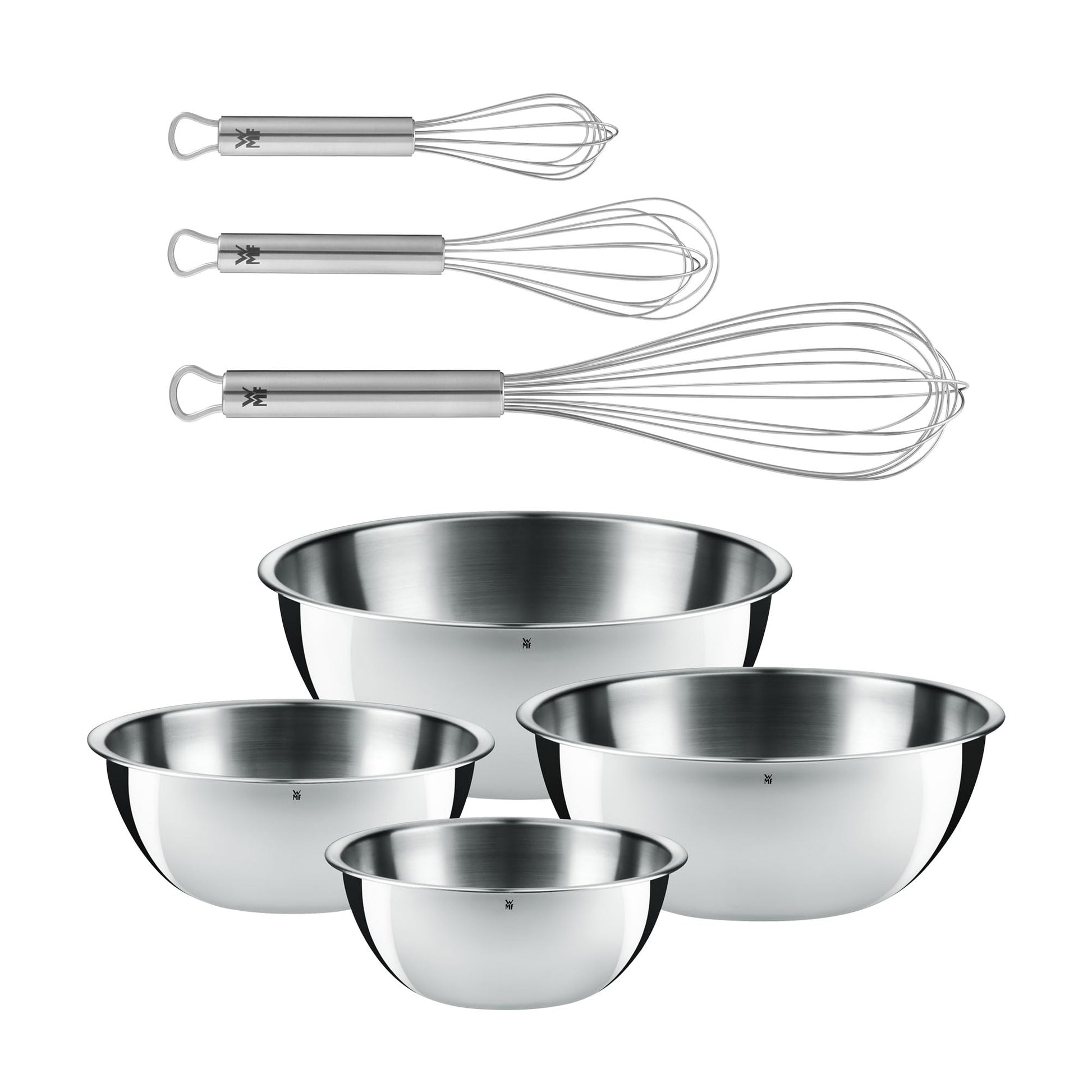 - Contents: 1x kitchen bowl diameter 16 (height 6 cm, volume 0.75 l), 1x kitchen bowl diameter 18 (height 7 cm, volume 1.0 l), 1x kitchen bowl diameter 22 cm (height 8.5 cm, volume 2.0 l), 1x kitchen bowl diameter 24 cm (height 9.5 cm, volume 2.75 l), item number: 0645709990